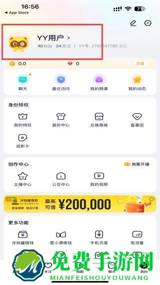 1、打开YY直播APP,点击右下角未登录的功能按钮。