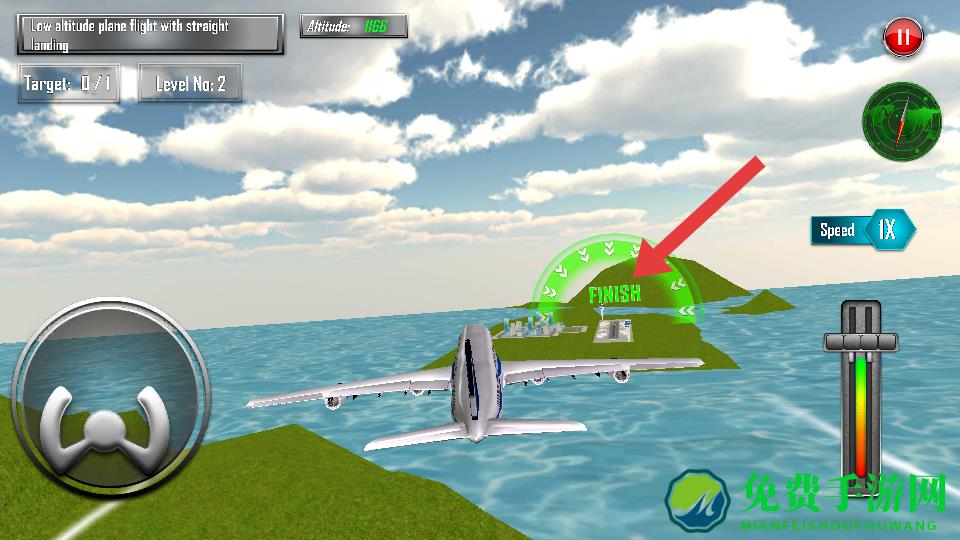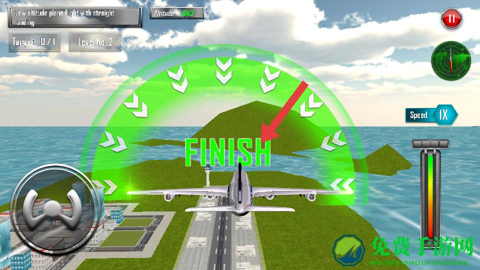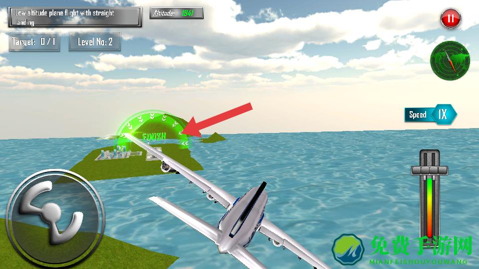 1、提前锁定目标,飞行中留意FINISH标识的降落区域,通过航向仪调整方向,确保飞机始终对准降落区域的中线,避免航线偏移。