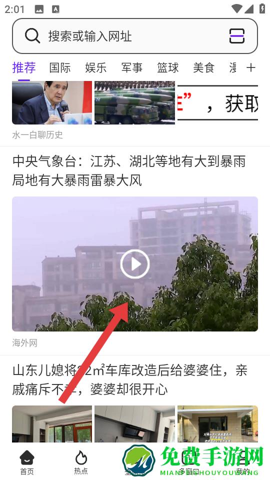 1、打开微米的浏览器,需要在首页找到并点击要下载的视频,进入视频播放的界面。