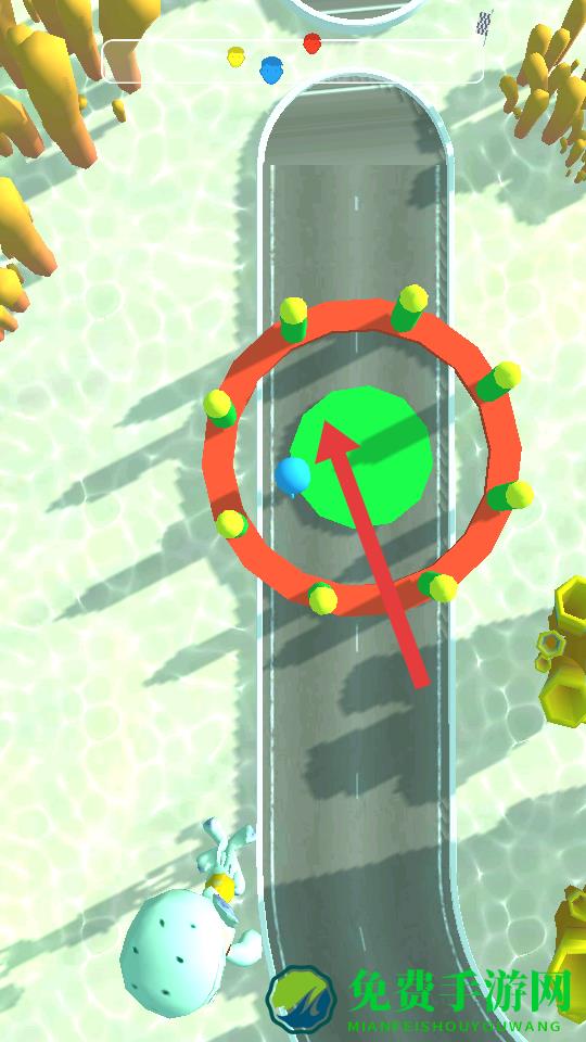3、留意赛道里的特殊元素,像环形装置可借助它改变位置,遇到类似海绵宝宝的形象,尝试靠近,可能触发增益如加速。