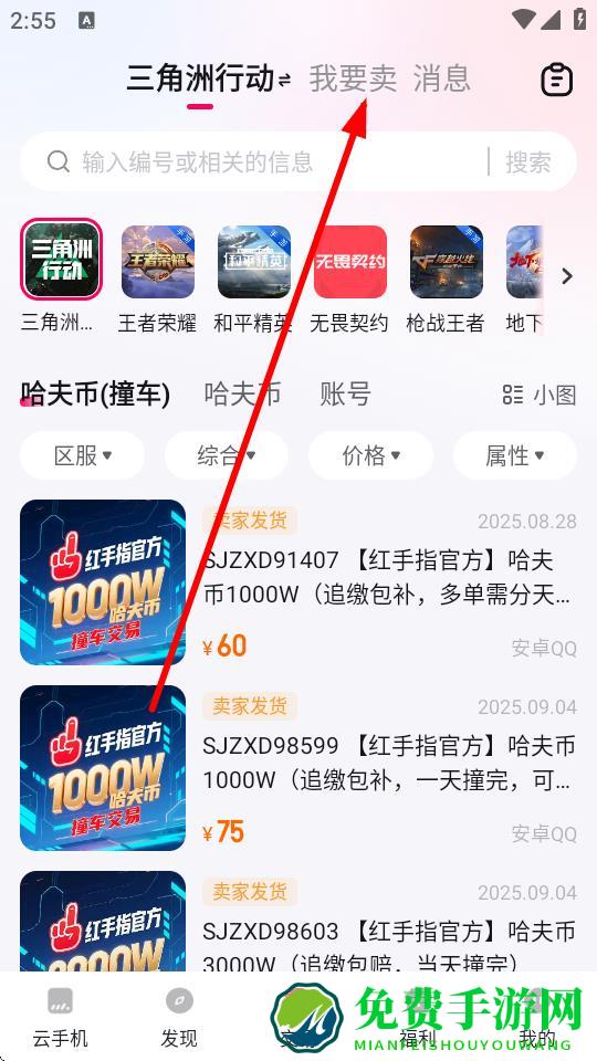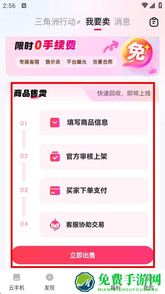 3、进入我要卖界面后,找到并点击立即出售按钮。