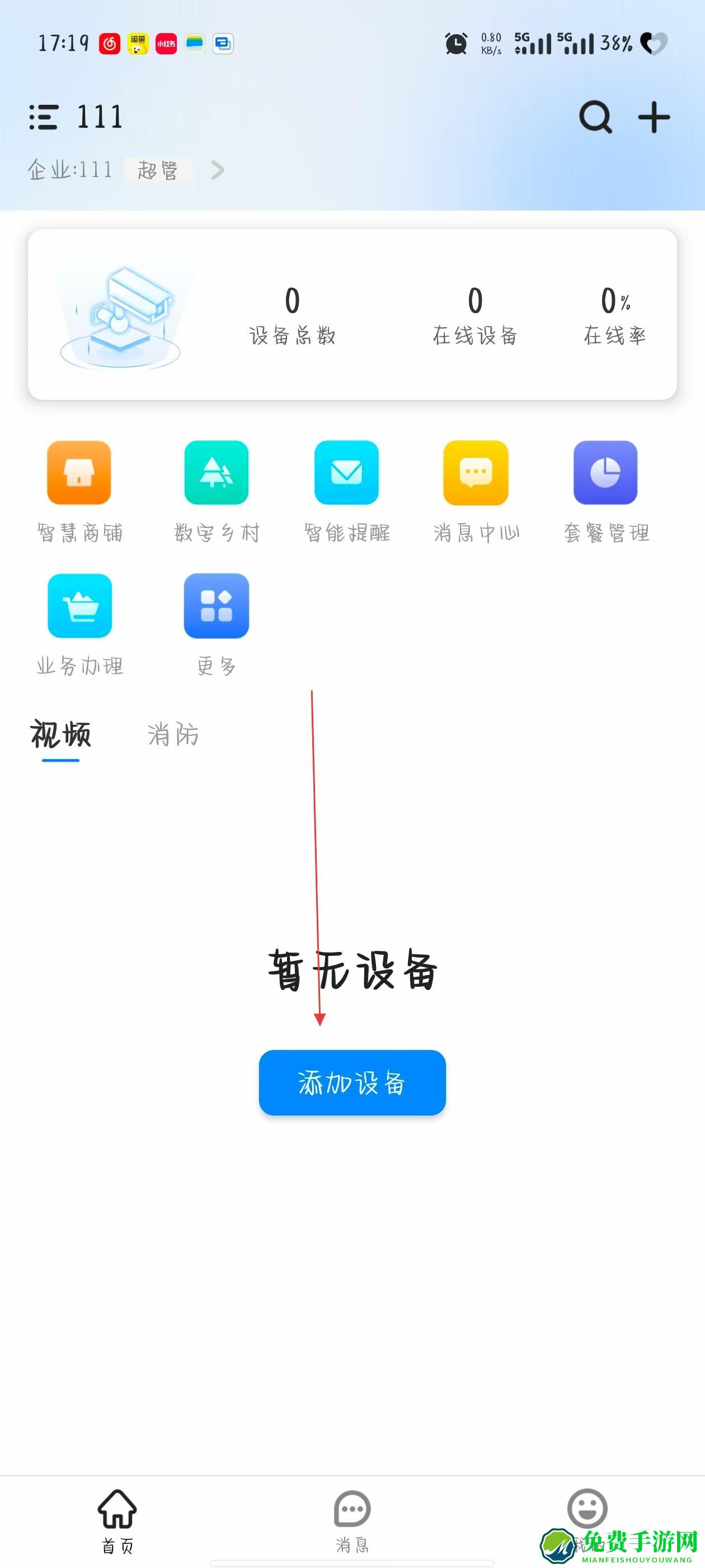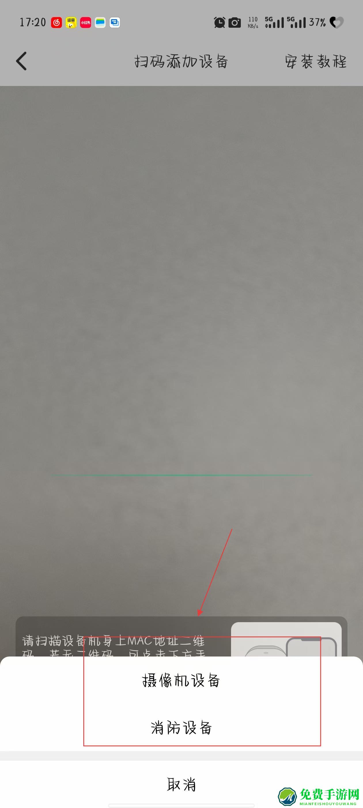 1、打开移动千里眼APP,在首页点击添加设备按钮,进入扫码添加设备页面。