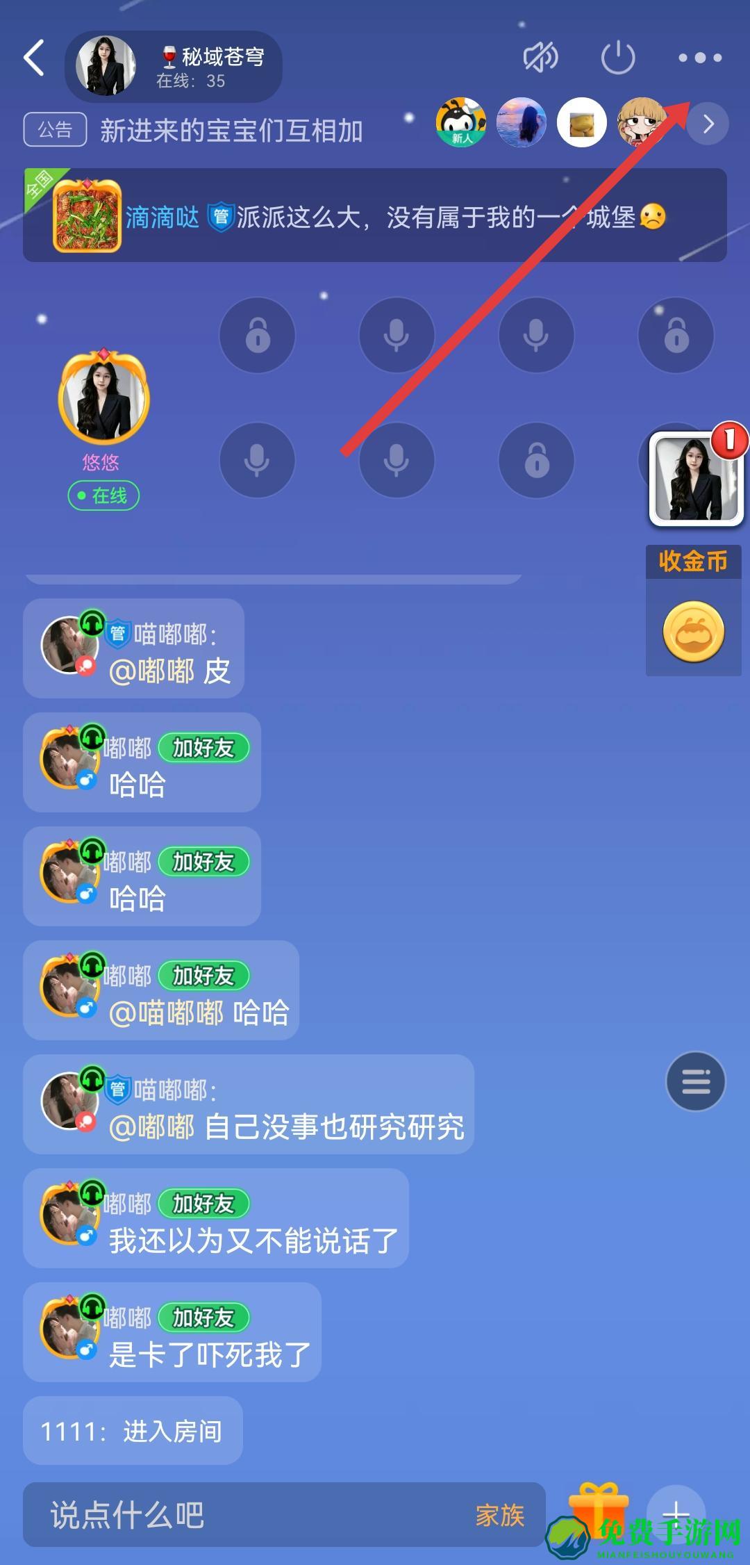 3、进入家族聊天界面后,点击右上角的三点图标,进入家族信息页面。