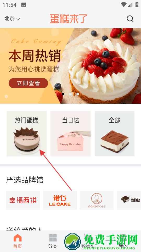 1、在蛋糕来了首页,点击热门蛋糕,进入热门蛋糕列表页面。
