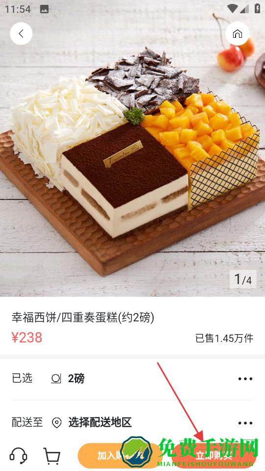 3、在蛋糕详情页面,点击立即购买,进入配送地址选择页面。