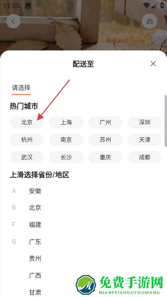 4、在配送地址选择页面,选择北京作为配送城市,即可进行后续购买操作。