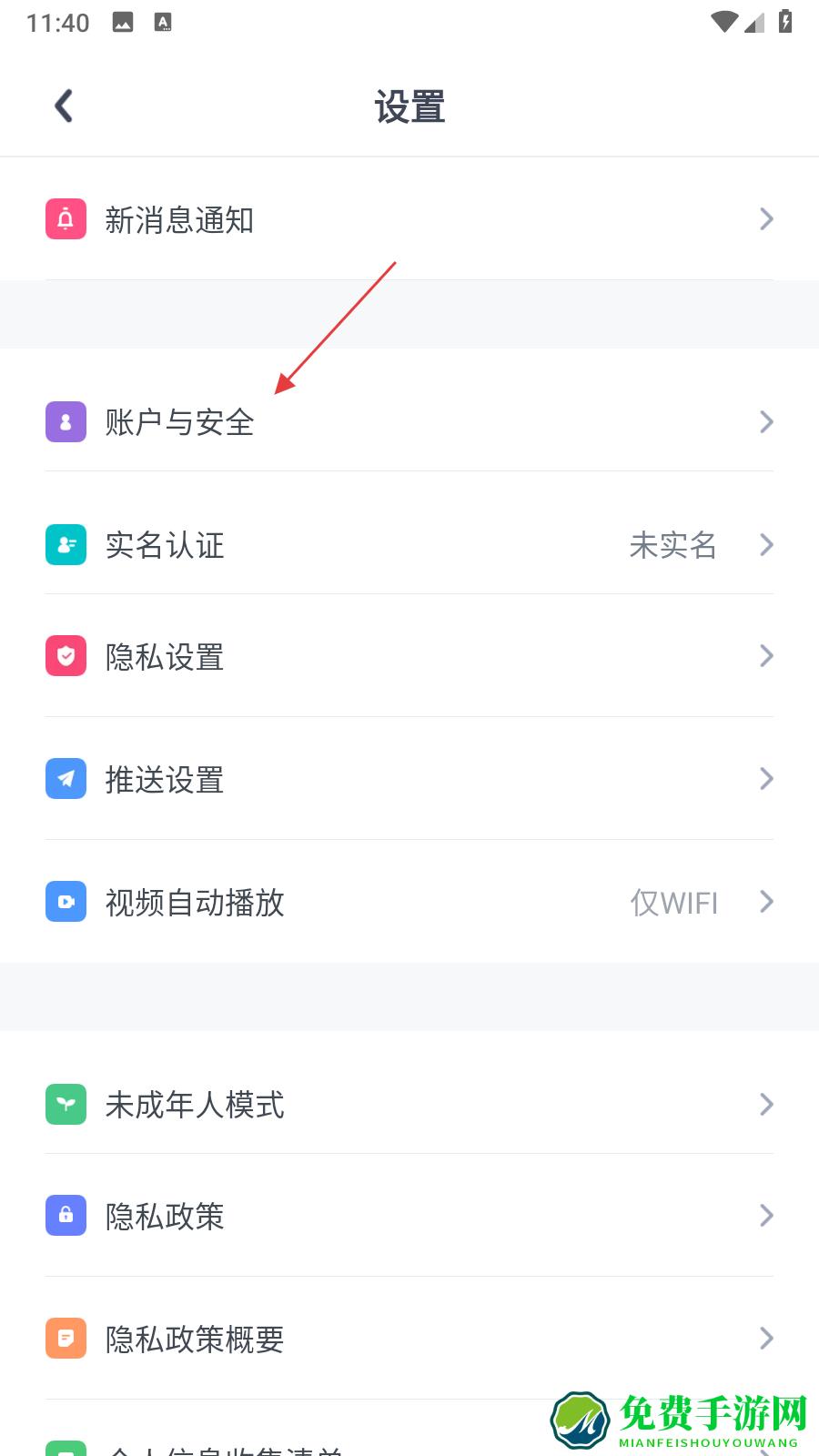 3、在设置界面,点击账户与安全选项,进入账户安全页面。