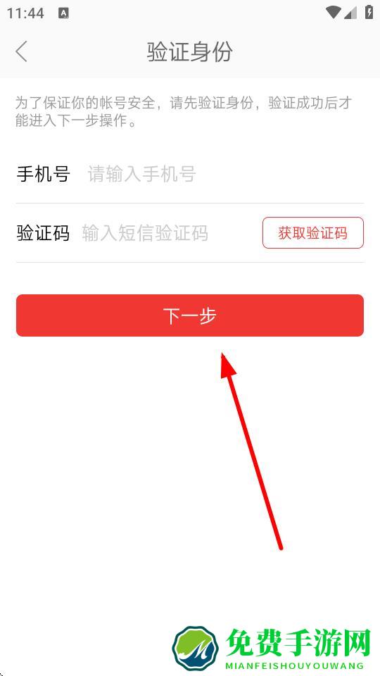 4、在验证身份页面,输入手机号并点击获取验证码,然后点击下一步,按后续提示完成密码修改。