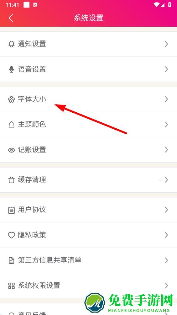 3、在系统设置页面中,点击字体大小选项,进入字体大小调整界面。