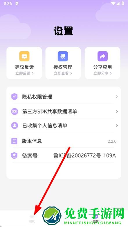 1、打开照相机高清,在设置页面点击底部的相机选项,进入高清相机功能页面。
