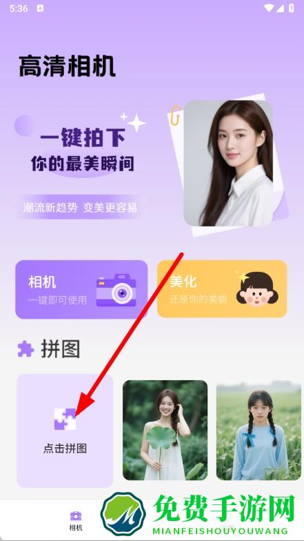 2、在高清相机页面,点击拼图选项,进入选择图片页面。