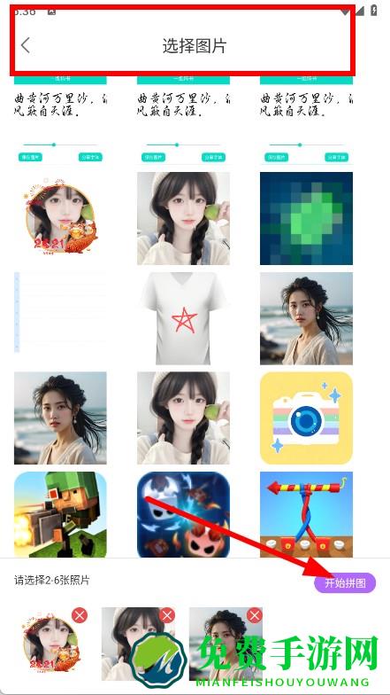3、在选择图片页面,挑选2 - 6张需要拼接的图片,点击开始拼图按钮。
