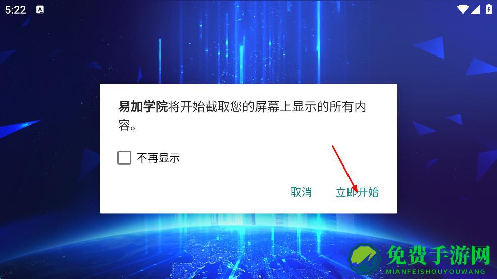 2、在新的提示界面,显示易加学院将开始截取屏幕内容,点击“立即开始”按钮,进入软件的登录界面。