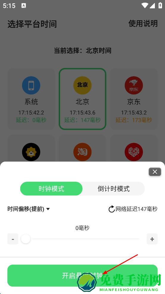 3、选定北京时间后,点击“启动悬浮”按钮,弹出悬浮时钟设置窗口,可看到“时钟模式”“倒计时模式”等选项。