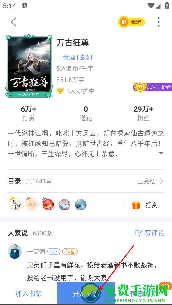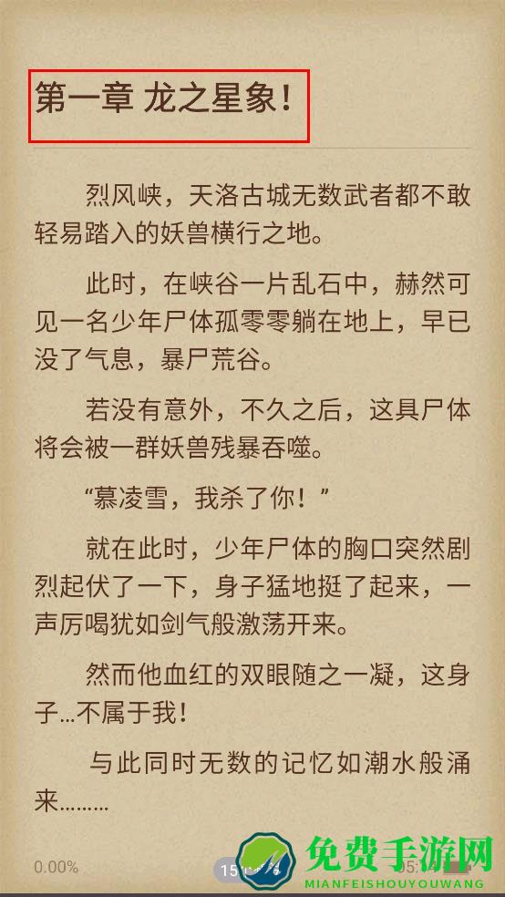 4、在阅读页面,可阅读书籍内容,万古狂尊的第一章。