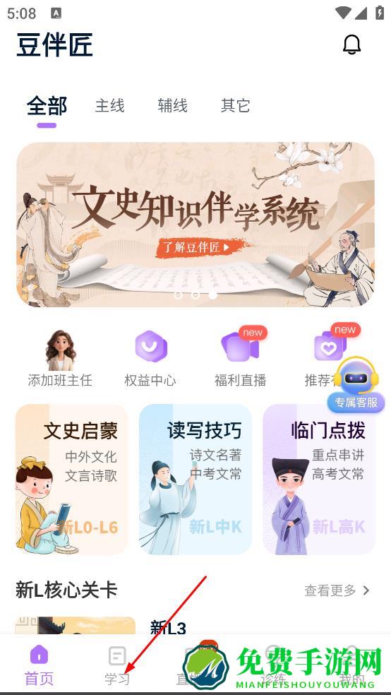 2、在豆伴匠主界面,点击学习,进入我的学习页面。