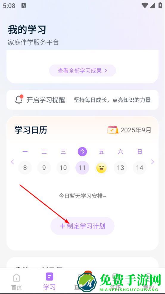 3、在我的学习页面,点击制定学习计划,进入管理学习计划页面。