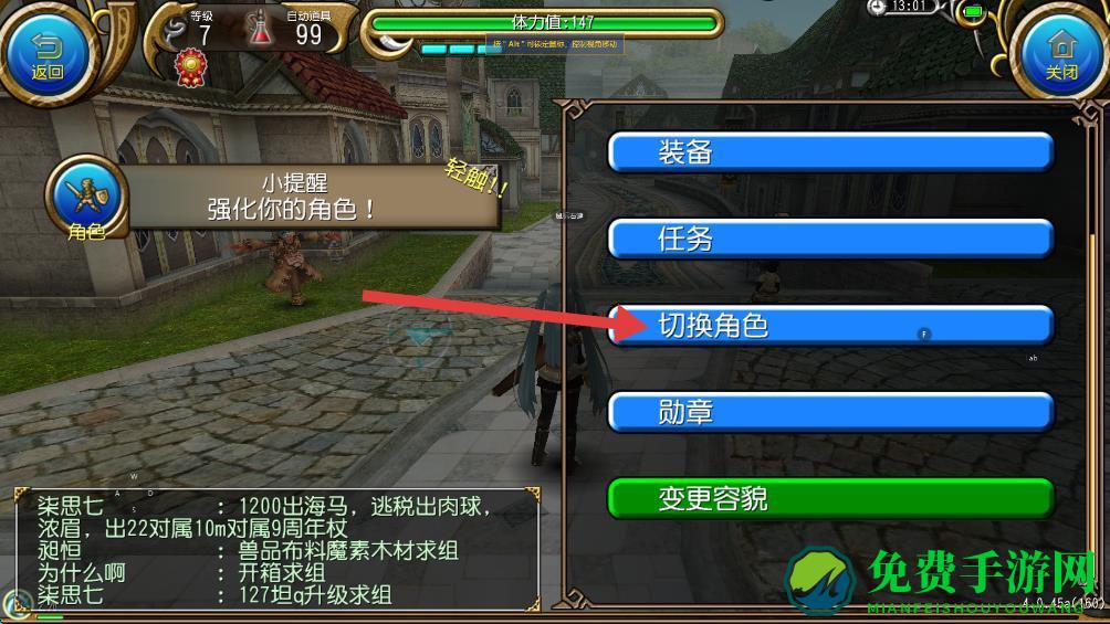 3、进入角色界面后,点击切换角色按钮。