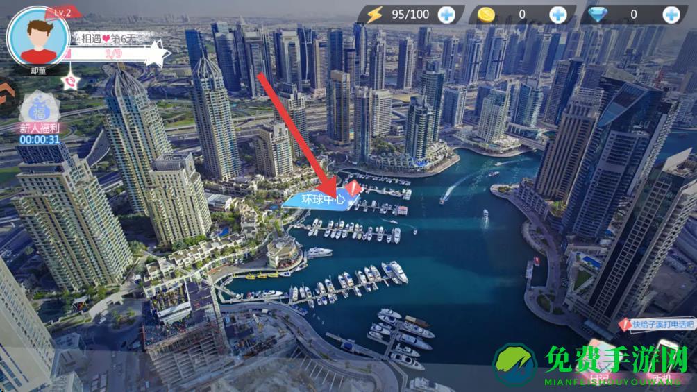 3、在游戏主页面找到并点击环球中心按钮。