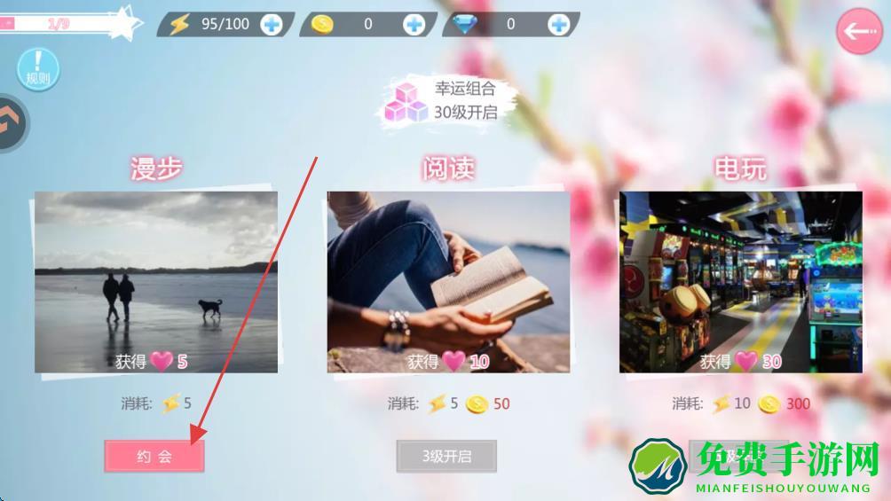 4、选择约会按钮并点击,即可增加亲密度。