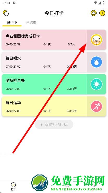 2、在APP主界面,点击要操作的打卡目标右侧图标,进入该打卡目标的详情页面。