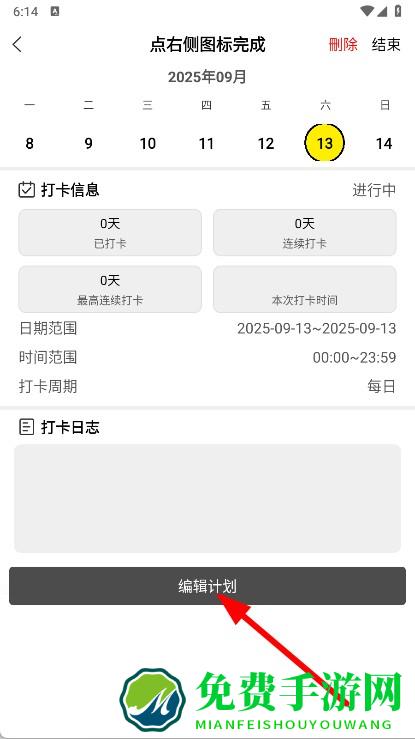 3、在打卡目标详情页面,点击编辑计划按钮,进入打卡计划编辑页面。