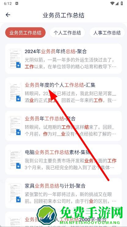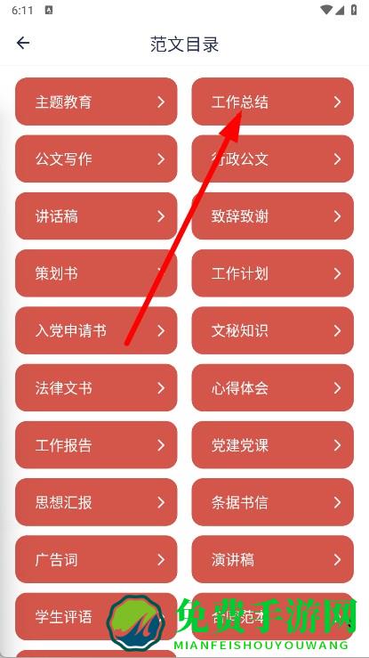 3、在范文列表页面,挑选具体的范文,点击进入范文详情页面。