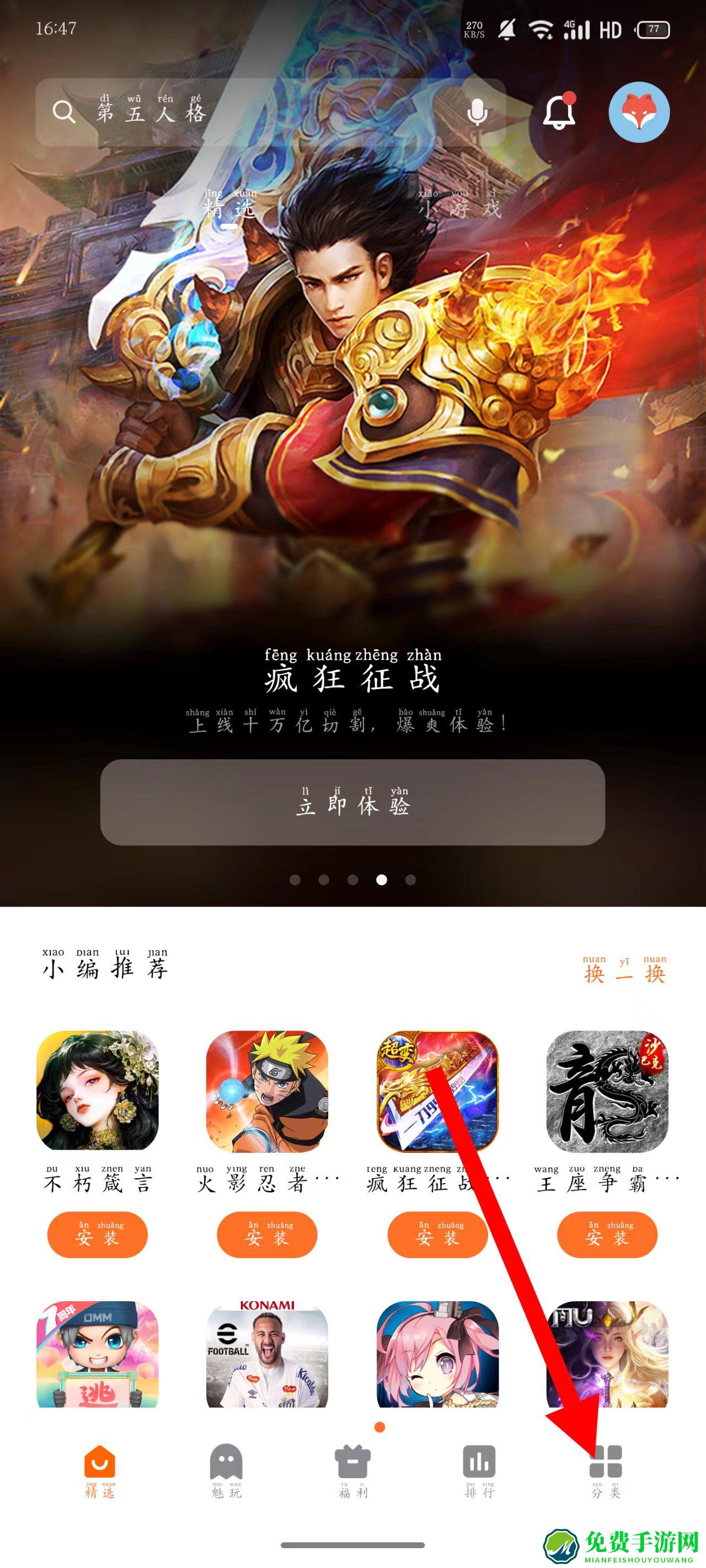 1、打开魅族游戏中心,点击底部导航栏的分类选项。