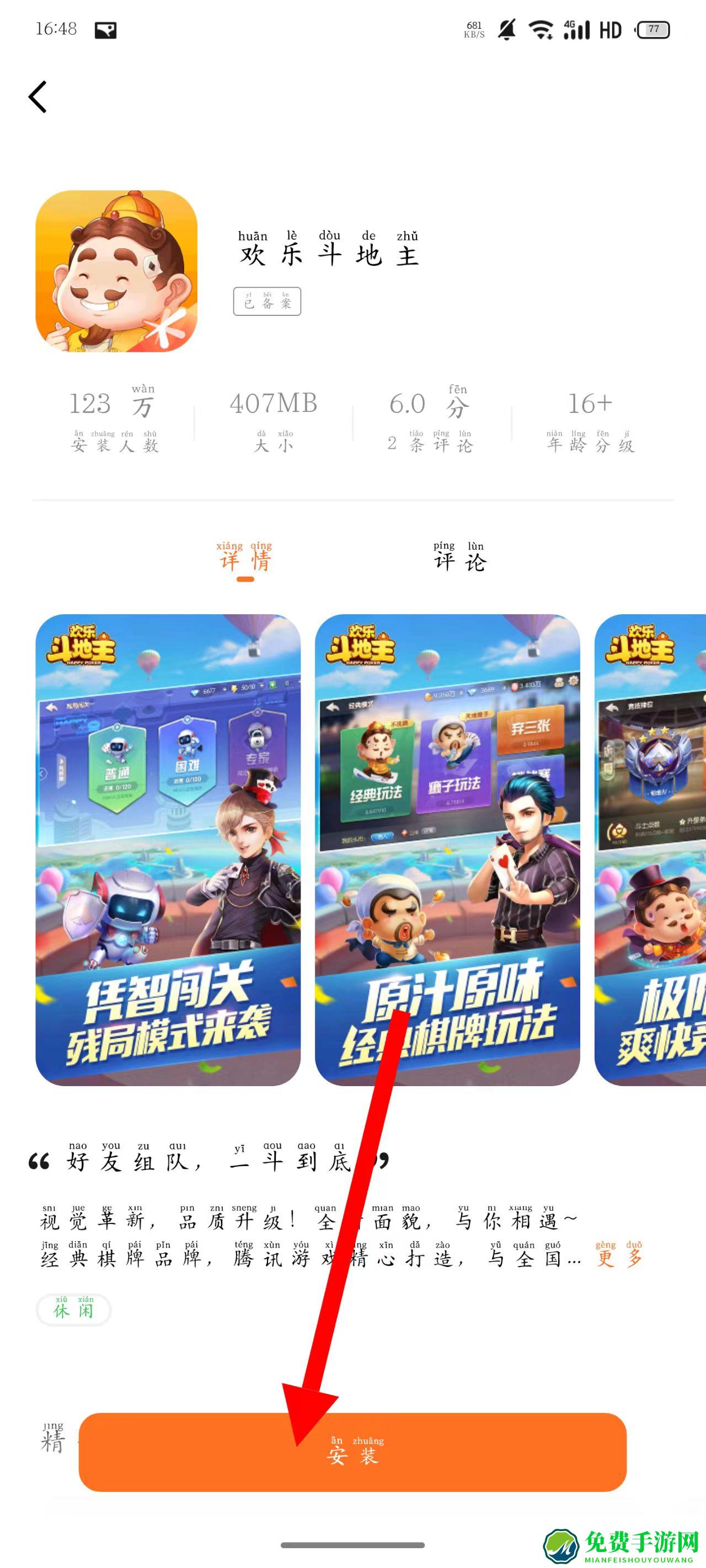 4、在游戏详情页面,点击安装按钮,即可开始安装该游戏。