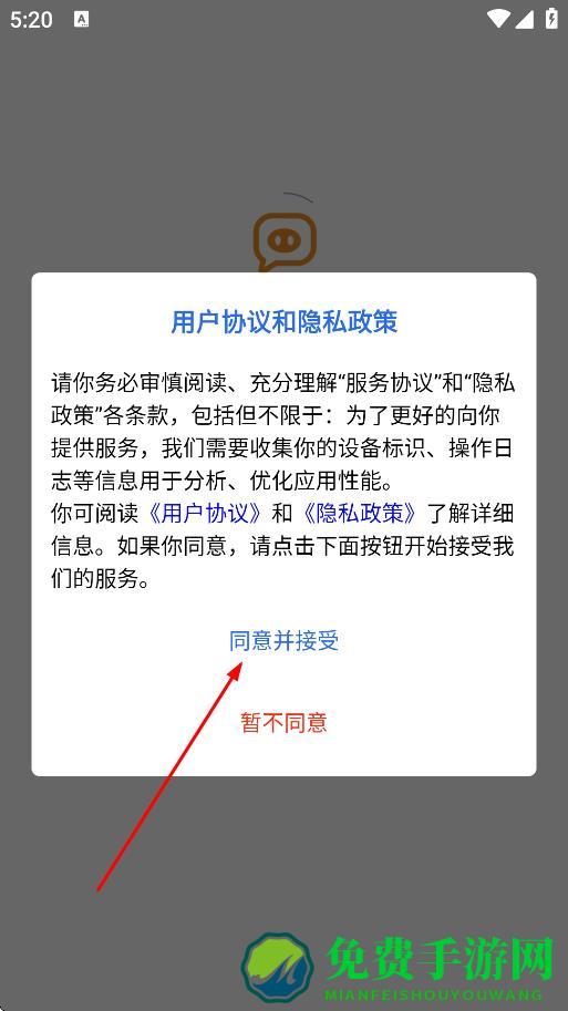 1、在用户协议和隐私政策弹窗中,点击同意并接受,进入客服聊天页面。