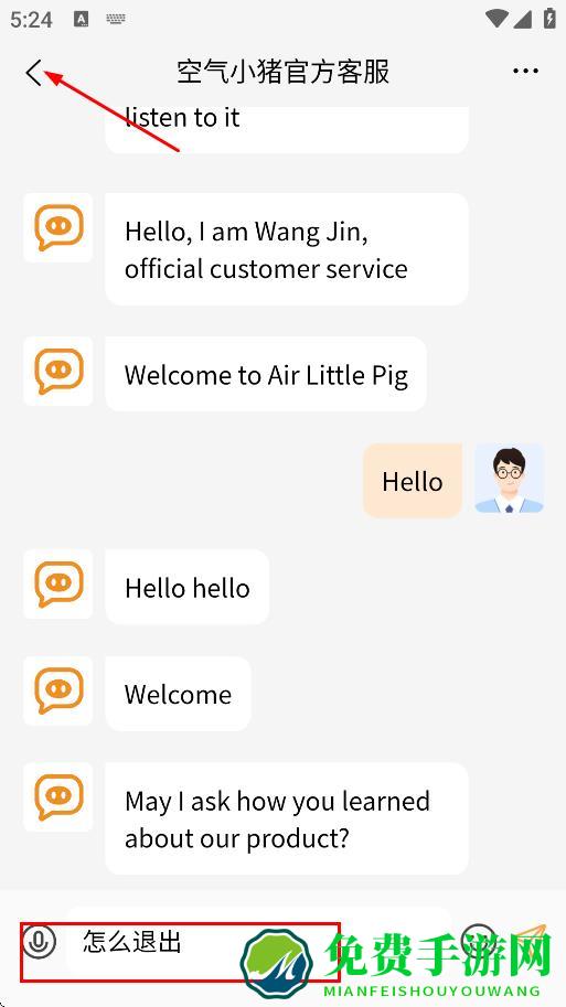 2、在客服聊天页面,点击左上角返回,回到消息页面。