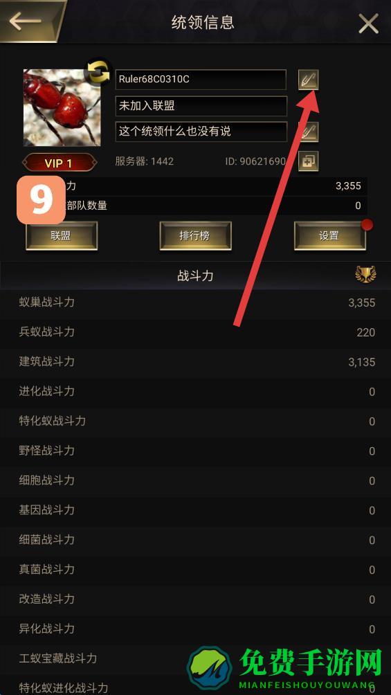 1、点击屏幕上方显示战斗力数值的区域,进入统领信息界面。