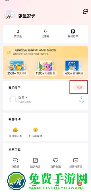 四、创建完成后,返回我的界面就可以看到已成功添加2个孩子