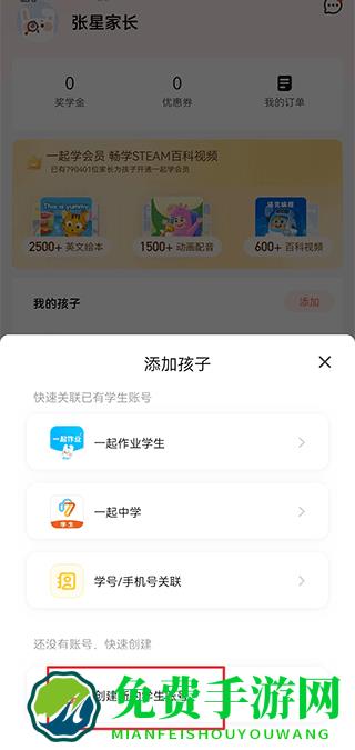 二、可以一键关联已有学生账号,也可以创建新的生账号