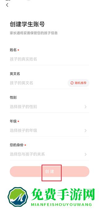 三、如创建新账号,将孩子信息完善后,点击创建
