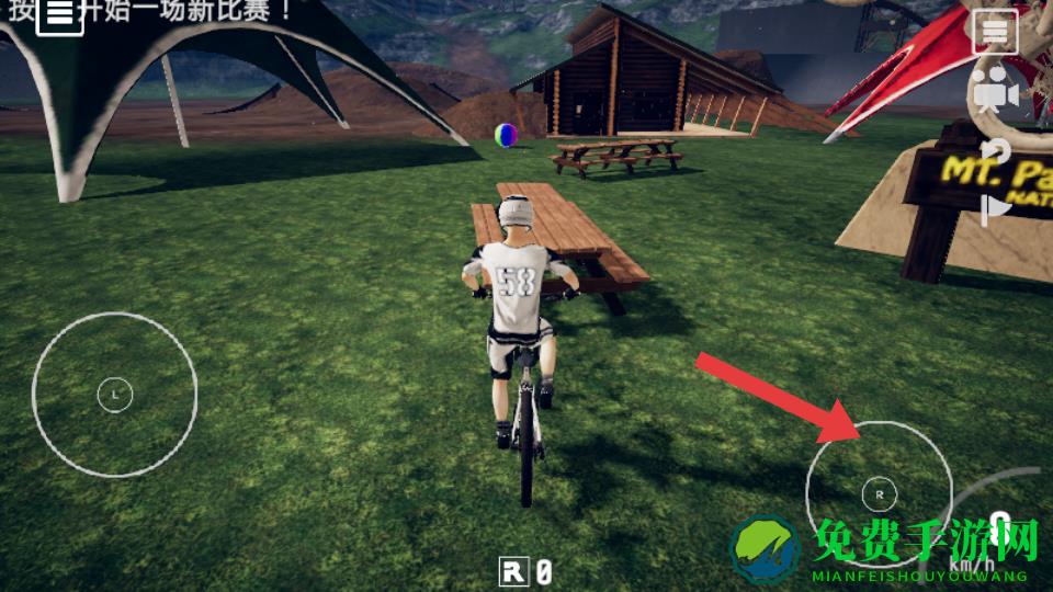2、当需要调整骑行方向时,点击箭头指向的右侧R按钮,配合其他操作,可改变骑行方向,在场地中灵活穿梭,适应不同地形的骑行需求。