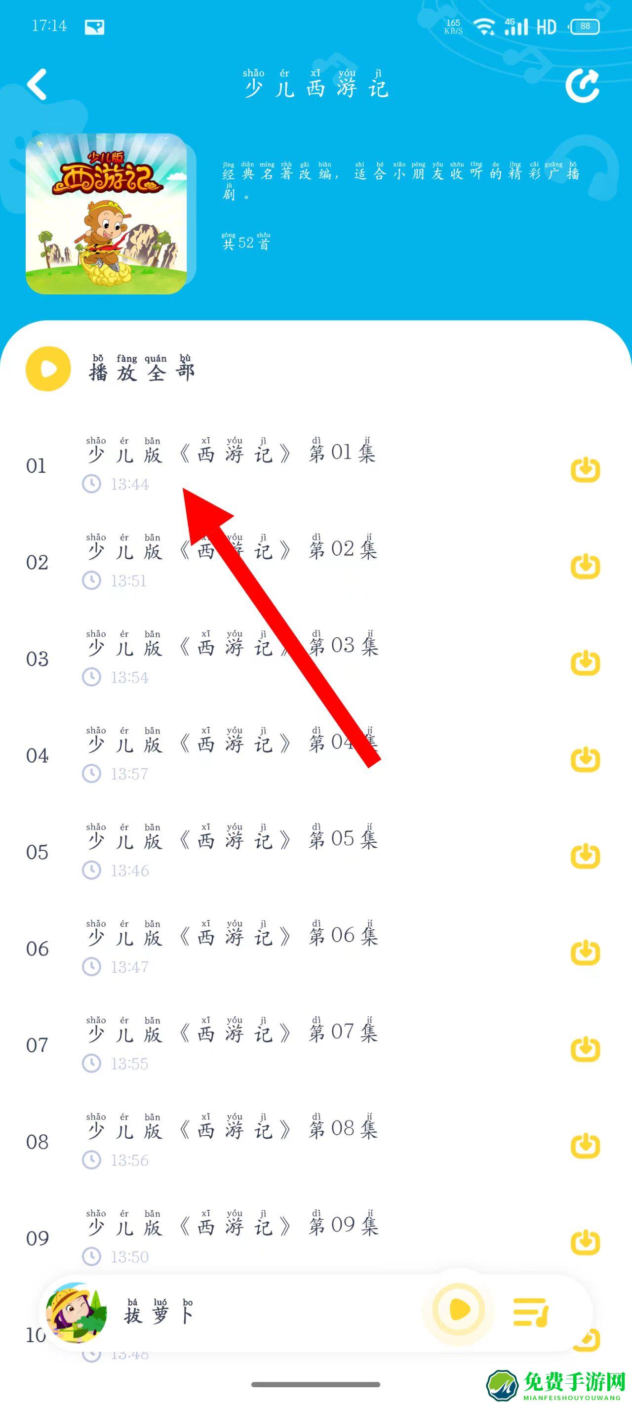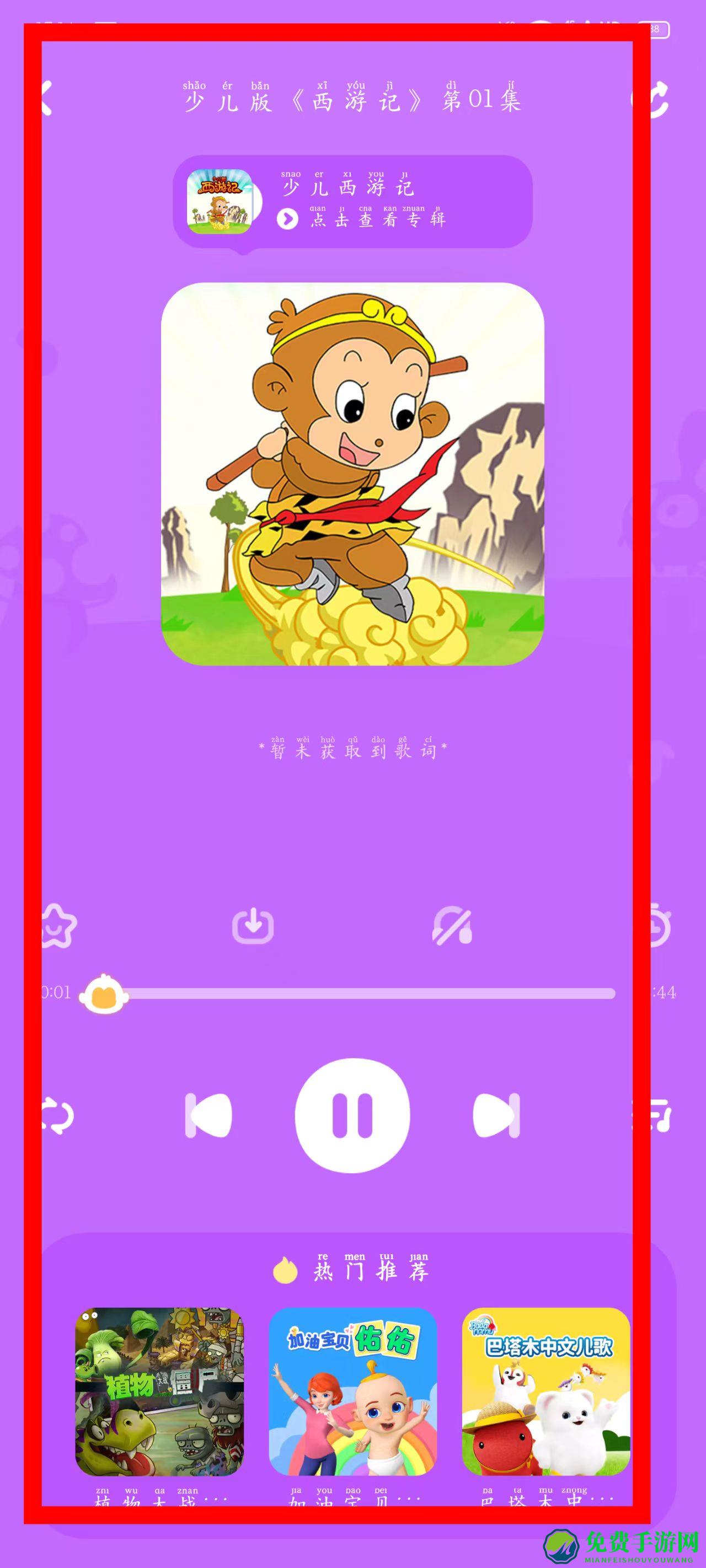 4、在播放页面,收听第01集的内容,享受精彩的少儿广播剧。