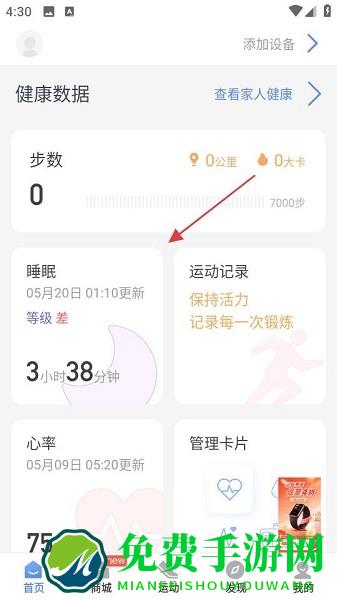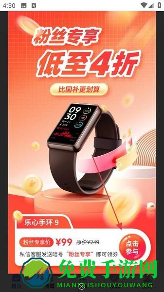 1、打开乐心健康客户端,若有手环优惠活动弹窗,可点击参与了解,查看健康数据板块的步数、睡眠等信息。