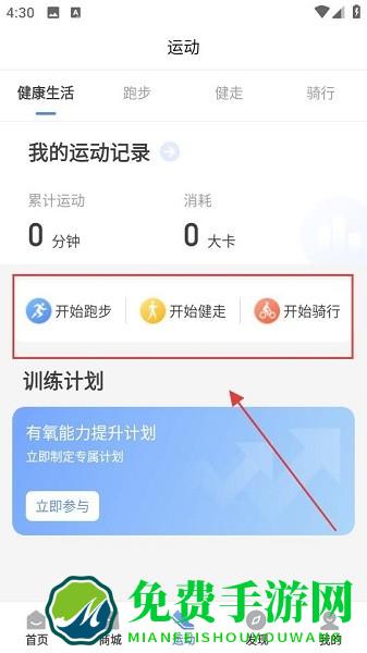 3、在运动页面的我的运动记录下方,选择开始跑步、开始健走或开始骑行,即可开启运动,同步记录运动数据。