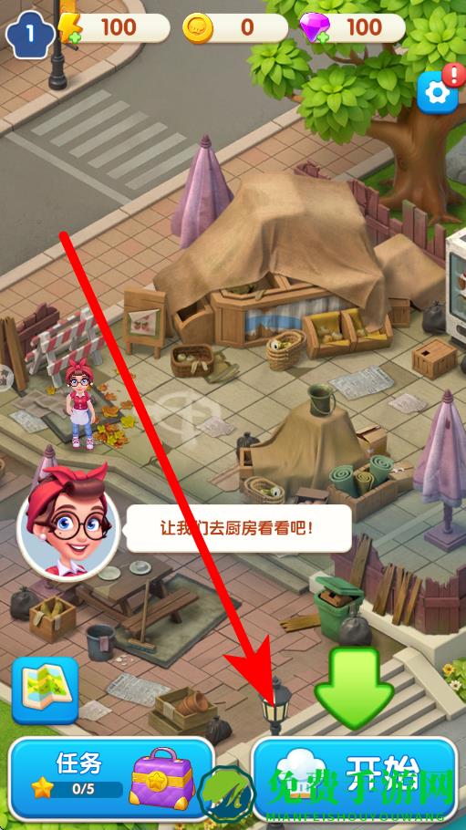 1、玩家体验,点击开始,进入到作品的主流程,开启在休闲经营类作品中的游玩之旅,准备体验后续的使用生成器等环节。