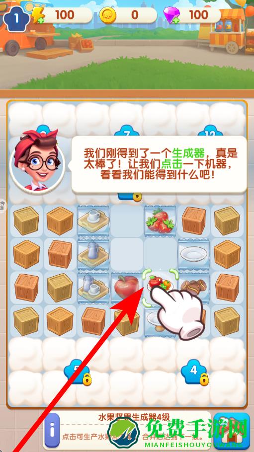 2、使用生成器需在生成器界面,点击生成器,借助生成器来获取物品,为后续的合并等操作提供素材,推动经营流程的进行。