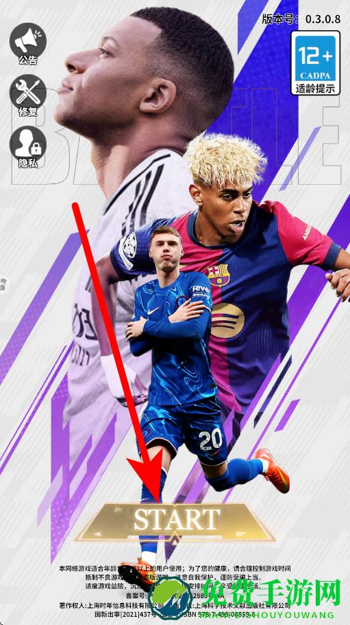 1、开始游戏时,点击START,进入到游戏的主流程,开启在足球类作品中的游玩之旅,准备体验后续的签约俱乐部等环节。