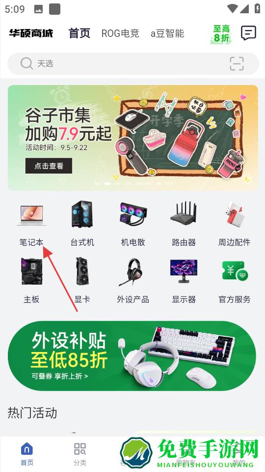 1、进入华硕商城首页,点击笔记本分类,查看笔记本相关商品。