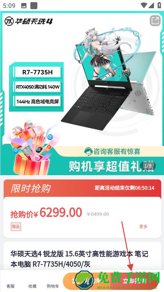 2、在笔记本商品列表中,挑选心仪的笔记本,比如天选4锐龙版,点击进入商品详情页。