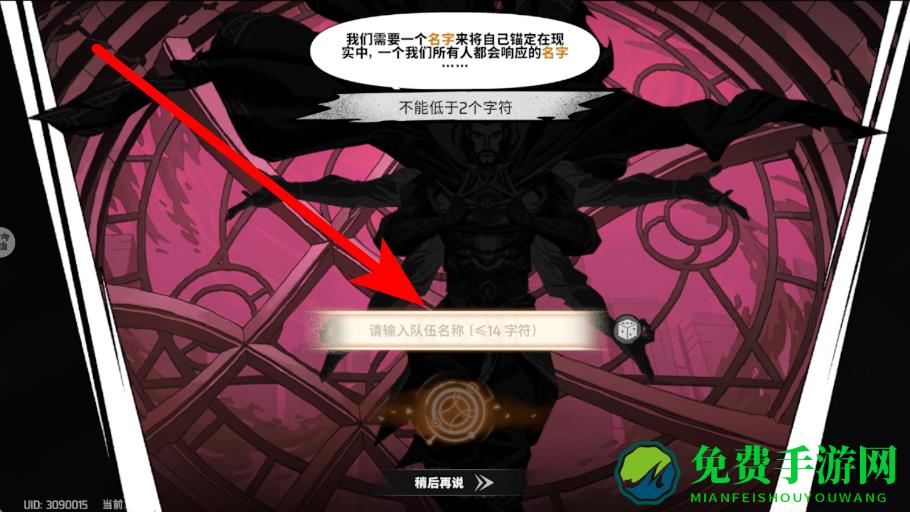 1、创建角色时,在指定输入框中,输入符合要求的队伍名称,完成角色相关的创建,开启在策略战斗类作品中的战斗之旅,准备体验后续的攻击等环节。