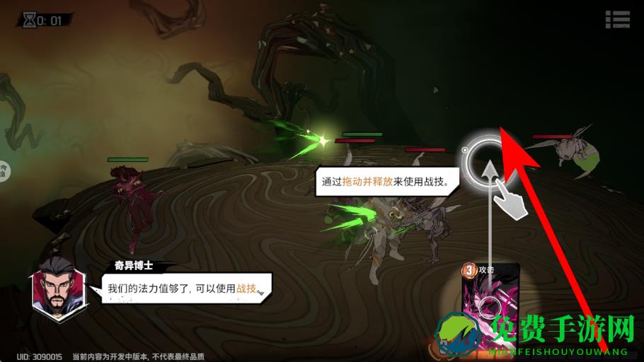 3、释放战技要在法力值足够时,通过拖动并释放的方式使用战技,利用战技的效果,增强战斗能力,对敌人造成更有效的打击,提升战斗的优势。