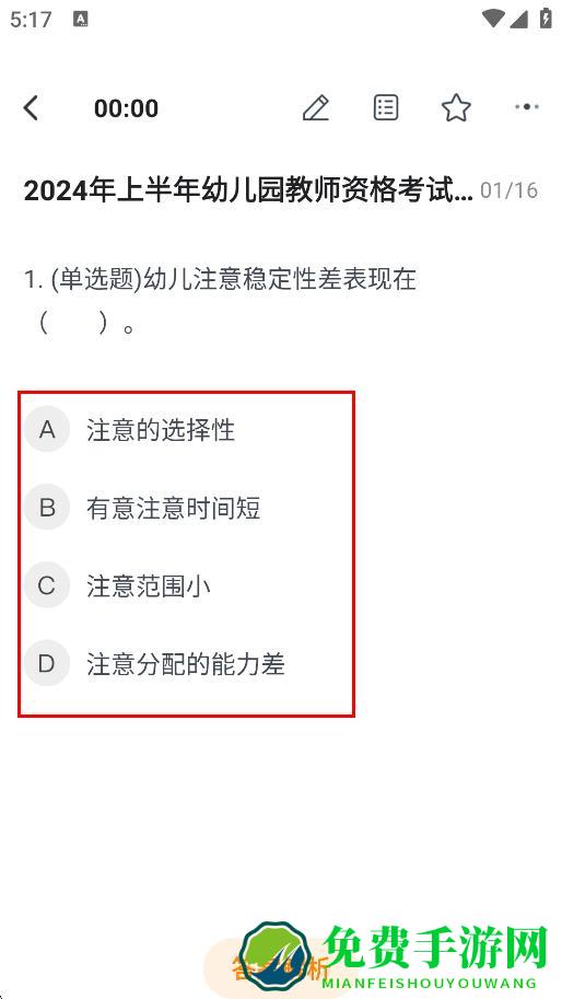 4、在试卷题目页面,可查看题目并选择答案选项。