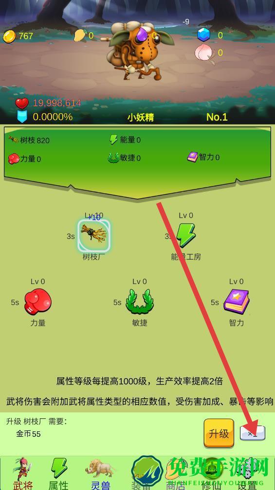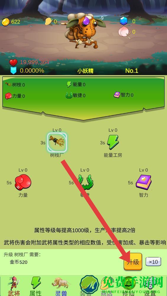 4、选择好倍数后,点击升级按钮,即可完成属性升级。
