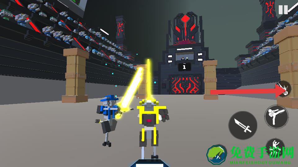 机器人角斗场作为Steam热门作品的手机移植版,以像素艺术风格呈现机器人格斗盛宴,凭借独特对战主题与多人联机功能吸引玩家,操控机器人在快节奏对战中把握移动、时机与位置,通过刀剑交锋、技能释放展开激烈对抗,搭配轻松搞笑的解说与放克风表情动作,辅以体素肢解的震撼视觉效果。
