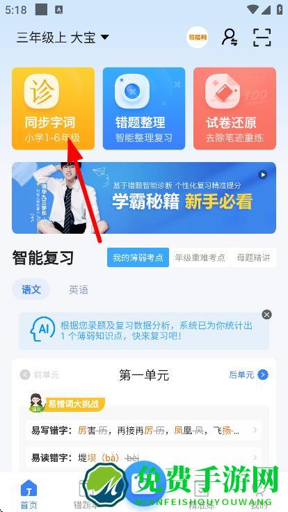 1、在软件首页,点击同步字词,进入同步字词页面。